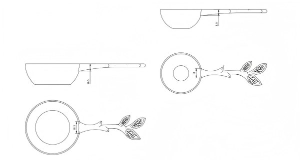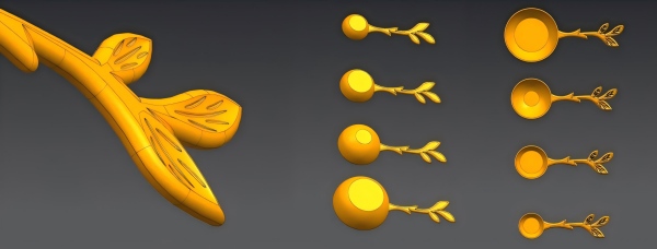 Прво, укључивало је процену облика производа и потенцијалне употребе на основу претходног искуства. Користећи легуру цинка као примарни материјал, израчунали смо густину материјала и карактеристике површине, укључили смо ергономију и дизајнирали укупне димензије за четири мерне кашике или кашике за лед. Накнадно смо прерадили сваку криву, Р-радијус-димензију на основу детаља малих димензија а.